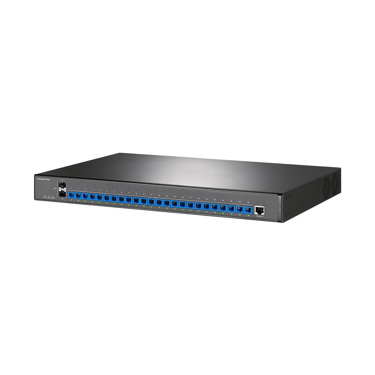 All 24 PoF ports feature built-in 1G SFP optics, eliminating external transceivers, compatibility risks, and insertion loss. SC connectors ensure field-ready plug-and-play. Benefit: Reduce deployment time by 35%, cut spare-part inventory by 50%, and eliminate “why won’t it link?” calls caused by mismatched modules.